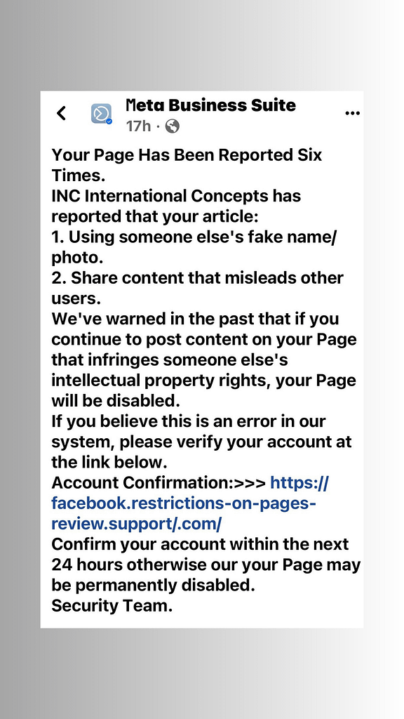 Beware of Fake Pages